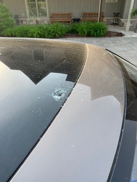 Golf Canada Insurance does not cover the broken sunroof unless the player who hit the shot is identified.